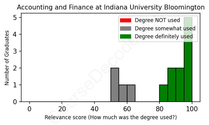 First, some facts. Of the Accounting and Finance graduates from Indiana University Bloomington we've analyzed , here's how many have used (or NOT used) their degree in their career: