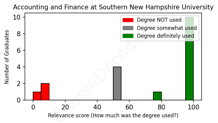 First, some facts. Of the Accounting and Finance graduates from Southern New Hampshire University we've analyzed , here's how many have used (or NOT used) their degree in their career: