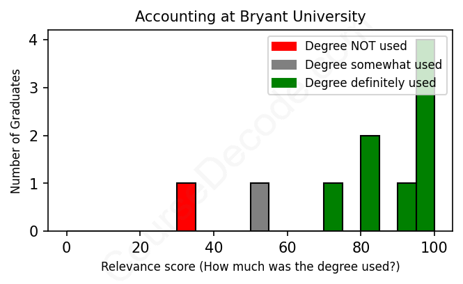 First, some facts. Of the Accounting graduates from Bryant University we've analyzed , here's how many have used (or NOT used) their degree in their career: