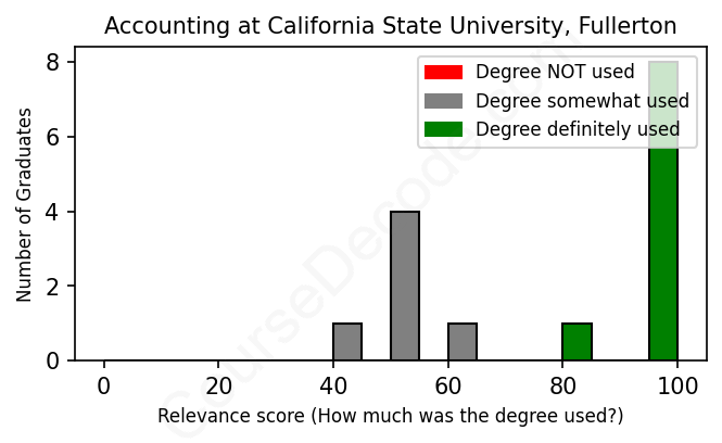 First, some facts. Of the Accounting graduates from California State University, Fullerton we've analyzed , here's how many have used (or NOT used) their degree in their career: