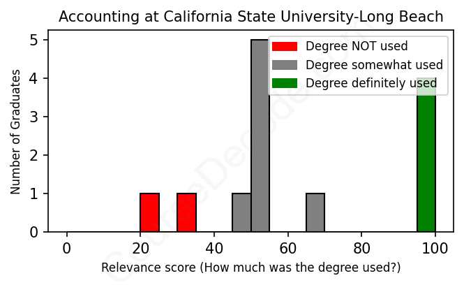 First, some facts. Of the Accounting graduates from California State University-Long Beach we've analyzed , here's how many have used (or NOT used) their degree in their career: