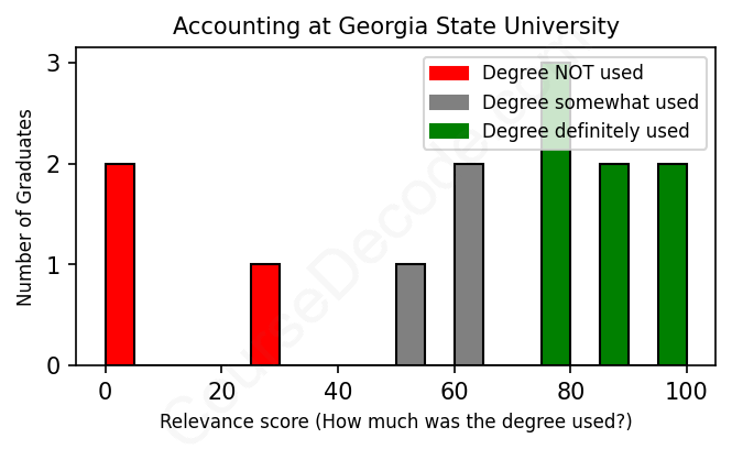 First, some facts. Of the Accounting graduates from Georgia State University we've analyzed , here's how many have used (or NOT used) their degree in their career: