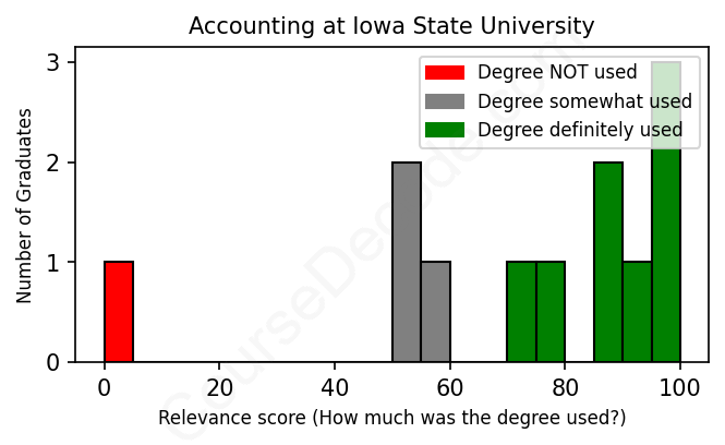 First, some facts. Of the Accounting graduates from Iowa State University we've analyzed , here's how many have used (or NOT used) their degree in their career: