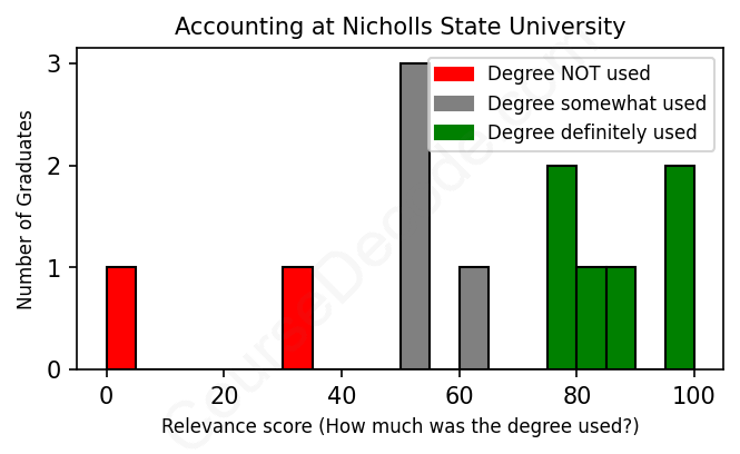 First, some facts. Of the Accounting graduates from Nicholls State University we've analyzed , here's how many have used (or NOT used) their degree in their career: