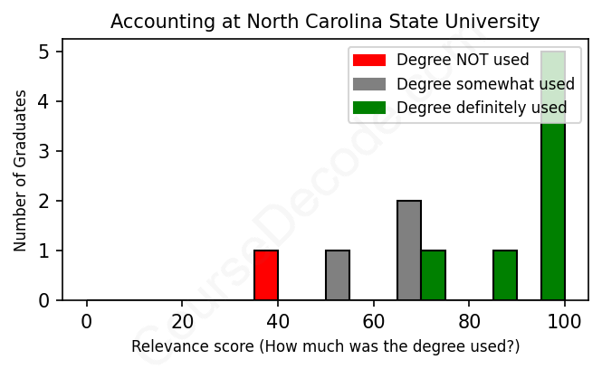 First, some facts. Of the Accounting graduates from North Carolina State University we've analyzed , here's how many have used (or NOT used) their degree in their career: