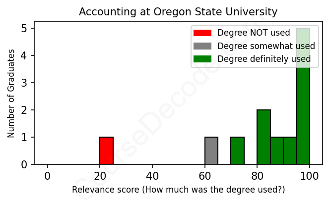 First, some facts. Of the Accounting graduates from Oregon State University we've analyzed , here's how many have used (or NOT used) their degree in their career: