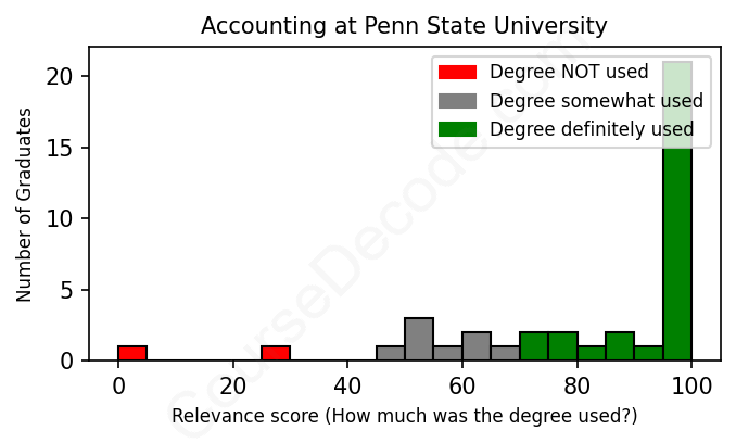 First, some facts. Of the Accounting graduates from Penn State University we've analyzed , here's how many have used (or NOT used) their degree in their career: