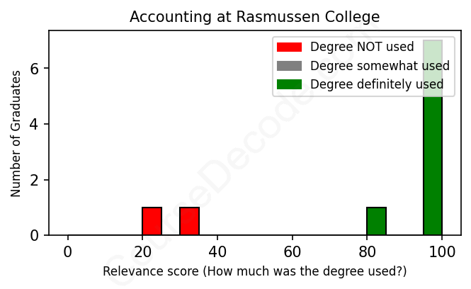 First, some facts. Of the Accounting graduates from Rasmussen College we've analyzed , here's how many have used (or NOT used) their degree in their career:
