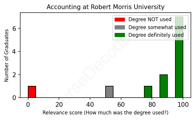 First, some facts. Of the Accounting graduates from Robert Morris University we've analyzed , here's how many have used (or NOT used) their degree in their career: