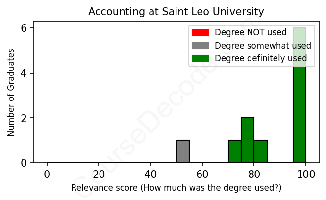 First, some facts. Of the Accounting graduates from Saint Leo University we've analyzed , here's how many have used (or NOT used) their degree in their career: