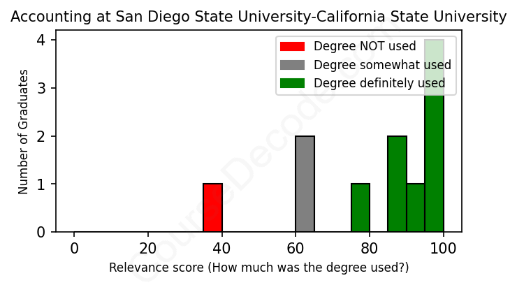 First, some facts. Of the Accounting graduates from San Diego State University-California State University we've analyzed , here's how many have used (or NOT used) their degree in their career: