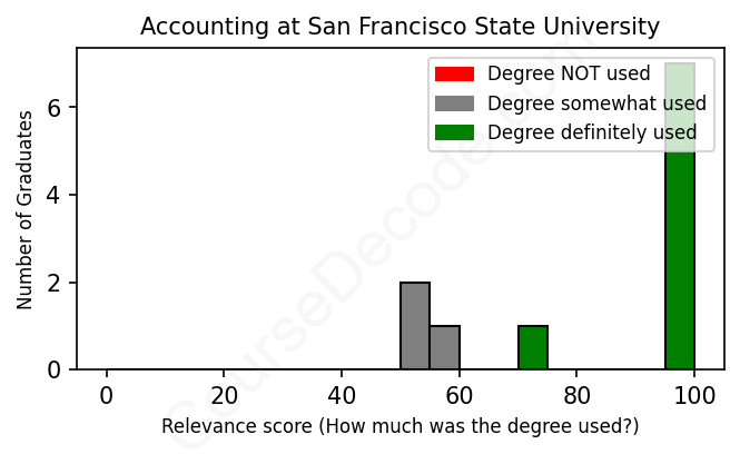 First, some facts. Of the Accounting graduates from San Francisco State University we've analyzed , here's how many have used (or NOT used) their degree in their career: