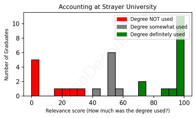 First, some facts. Of the Accounting graduates from Strayer University we've analyzed , here's how many have used (or NOT used) their degree in their career: