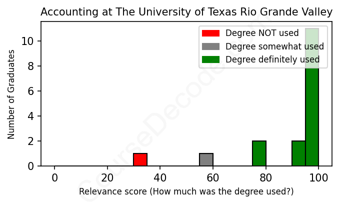 First, some facts. Of the Accounting graduates from The University of Texas Rio Grande Valley we've analyzed , here's how many have used (or NOT used) their degree in their career: