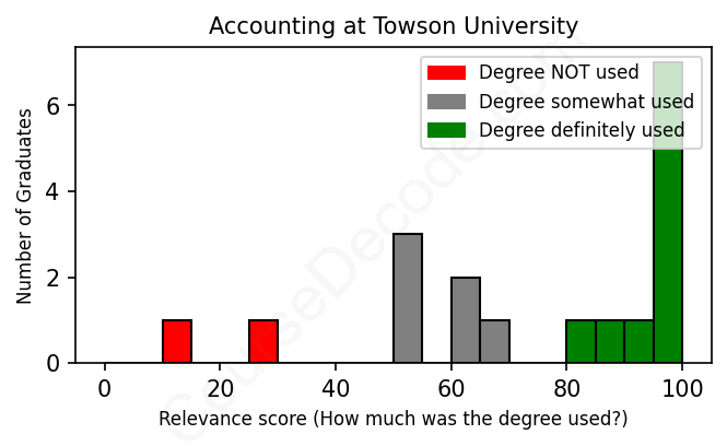 First, some facts. Of the Accounting graduates from Towson University we've analyzed , here's how many have used (or NOT used) their degree in their career: