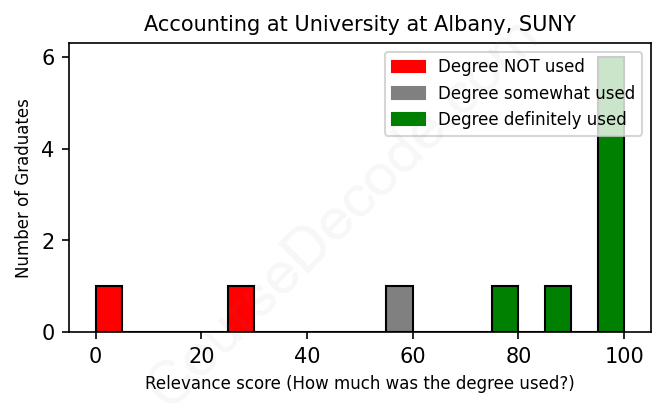 First, some facts. Of the Accounting graduates from University at Albany, SUNY we've analyzed , here's how many have used (or NOT used) their degree in their career: