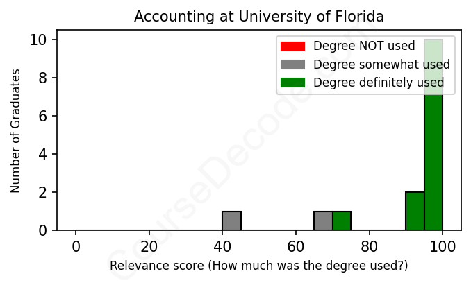 First, some facts. Of the Accounting graduates from University of Florida we've analyzed , here's how many have used (or NOT used) their degree in their career: