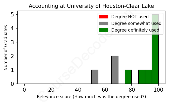 First, some facts. Of the Accounting graduates from University of Houston-Clear Lake we've analyzed , here's how many have used (or NOT used) their degree in their career: