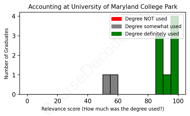 First, some facts. Of the Accounting graduates from University of Maryland College Park we've analyzed , here's how many have used (or NOT used) their degree in their career: