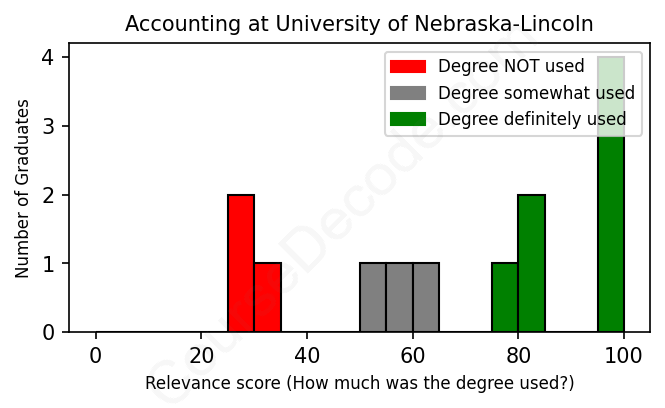 First, some facts. Of the Accounting graduates from University of Nebraska-Lincoln we've analyzed , here's how many have used (or NOT used) their degree in their career: