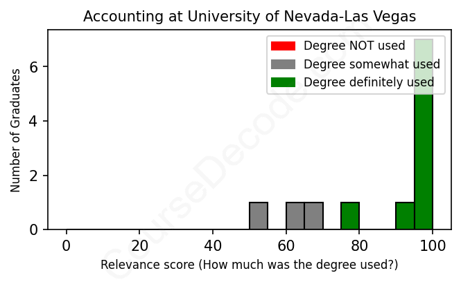 First, some facts. Of the Accounting graduates from University of Nevada-Las Vegas we've analyzed , here's how many have used (or NOT used) their degree in their career: