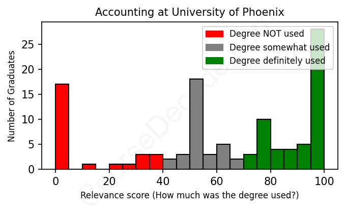First, some facts. Of the Accounting graduates from University of Phoenix we've analyzed , here's how many have used (or NOT used) their degree in their career: