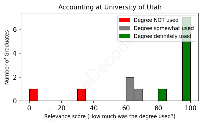 First, some facts. Of the Accounting graduates from University of Utah we've analyzed , here's how many have used (or NOT used) their degree in their career: