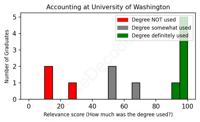 First, some facts. Of the Accounting graduates from University of Washington we've analyzed , here's how many have used (or NOT used) their degree in their career: