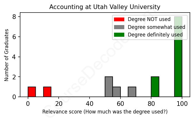 First, some facts. Of the Accounting graduates from Utah Valley University we've analyzed , here's how many have used (or NOT used) their degree in their career: