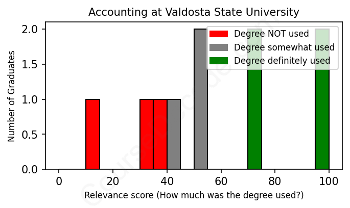 First, some facts. Of the Accounting graduates from Valdosta State University we've analyzed , here's how many have used (or NOT used) their degree in their career: