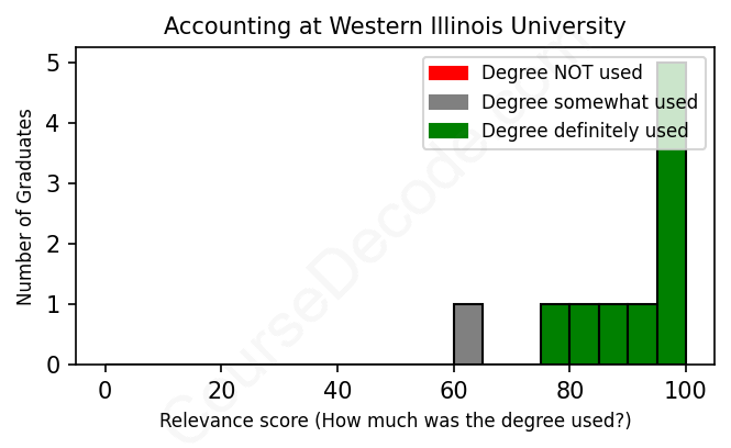 First, some facts. Of the Accounting graduates from Western Illinois University we've analyzed , here's how many have used (or NOT used) their degree in their career: