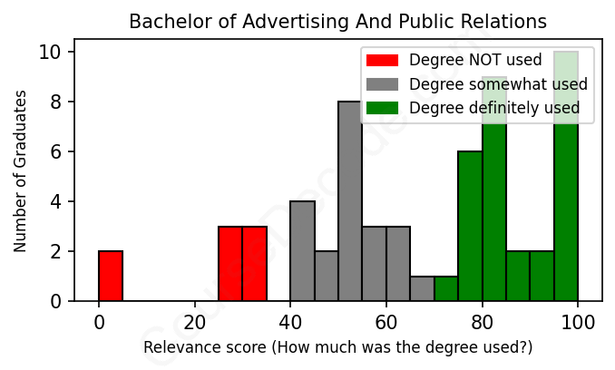 First, some facts. Of the Advertising And Public Relations graduates we've analyzed , here's how many have used (or NOT used) their degree in their career: