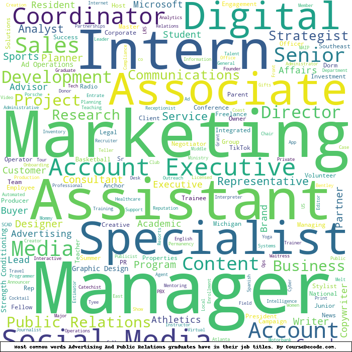 Here is a visual representation of the most common words in job titles for Advertising And Public Relations graduates: