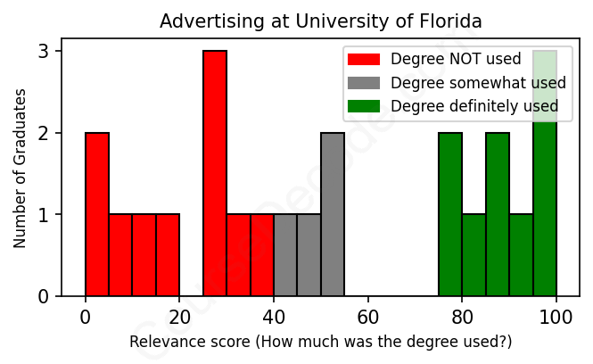 First, some facts. Of the Advertising graduates from University of Florida we've analyzed , here's how many have used (or NOT used) their degree in their career: