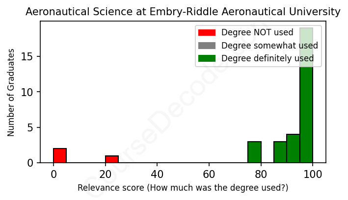 First, some facts. Of the Aeronautical Science graduates from Embry-Riddle Aeronautical University we've analyzed , here's how many have used (or NOT used) their degree in their career: