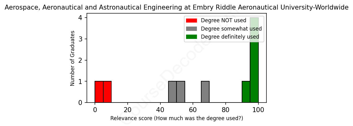 First, some facts. Of the Aerospace, Aeronautical and Astronautical Engineering graduates from Embry Riddle Aeronautical University-Worldwide we've analyzed , here's how many have used (or NOT used) their degree in their career: