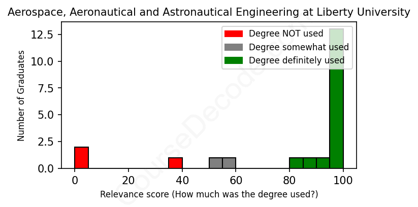 First, some facts. Of the Aerospace, Aeronautical and Astronautical Engineering graduates from Liberty University we've analyzed , here's how many have used (or NOT used) their degree in their career: