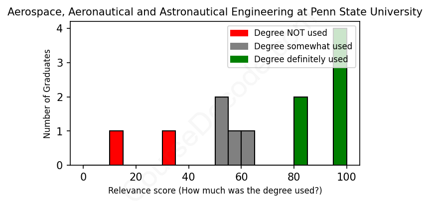 First, some facts. Of the Aerospace, Aeronautical and Astronautical Engineering graduates from Penn State University we've analyzed , here's how many have used (or NOT used) their degree in their career: