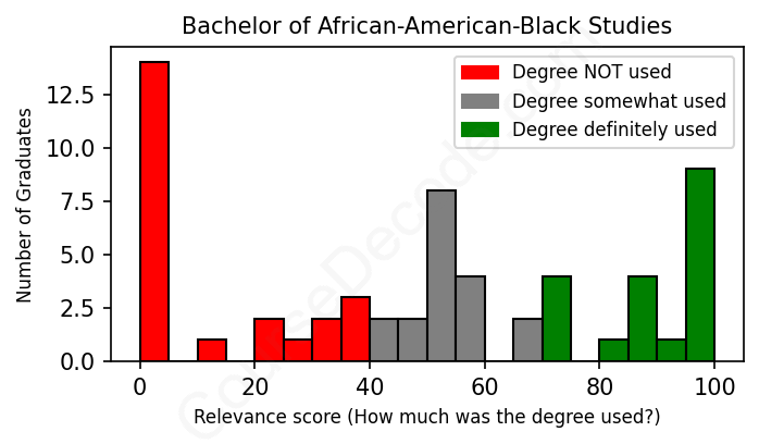 First, some facts. Of the African-American-Black Studies graduates we've analyzed , here's how many have used (or NOT used) their degree in their career: