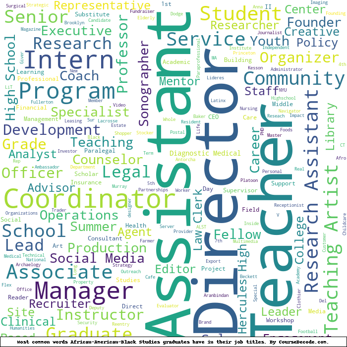 Here is a visual representation of the most common words in job titles for African-American-Black Studies graduates: