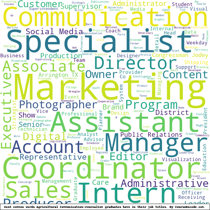 Here is a visual representation of the most common words in job titles for Agricultural Communication-Journalism graduates: