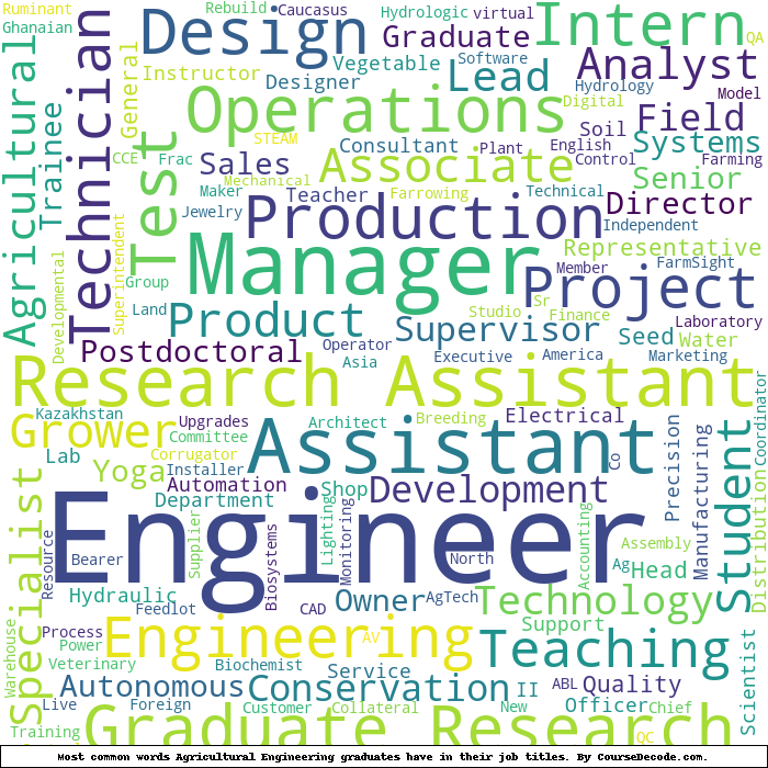Here is a visual representation of the most common words in job titles for Agricultural Engineering graduates: