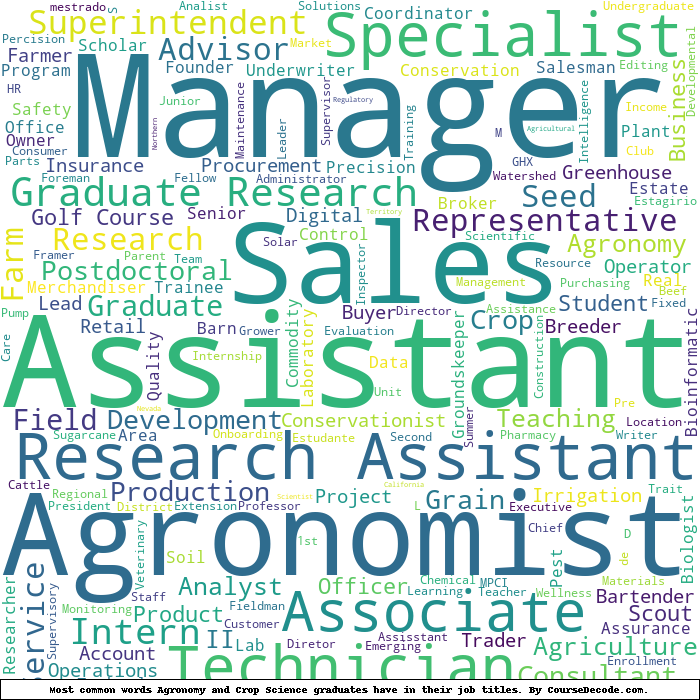 Here is a visual representation of the most common words in job titles for Agronomy and Crop Science graduates: