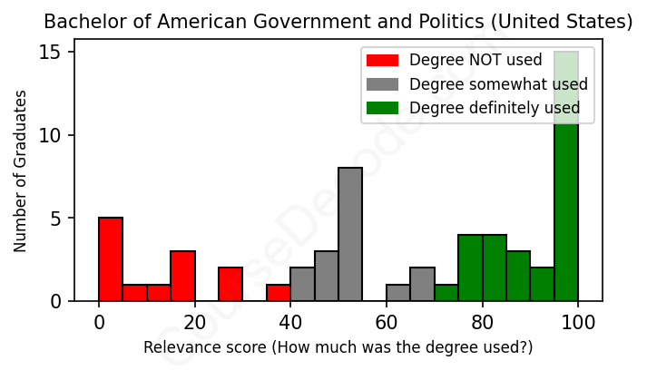 First, some facts. Of the American Government and Politics (United States) graduates we've analyzed , here's how many have used (or NOT used) their degree in their career: