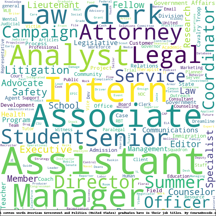 Here is a visual representation of the most common words in job titles for American Government and Politics (United States) graduates:
