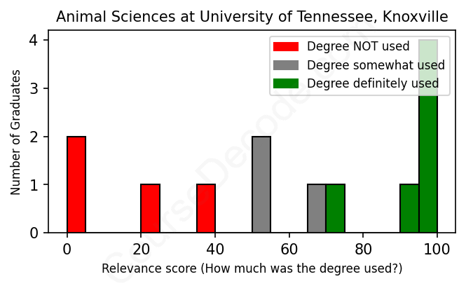 First, some facts. Of the Animal Sciences graduates from University of Tennessee, Knoxville we've analyzed , here's how many have used (or NOT used) their degree in their career: