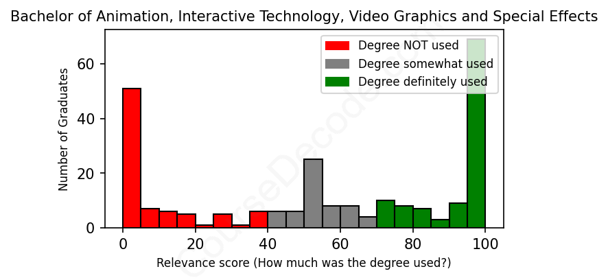 First, some facts. Of the Animation, Interactive Technology, Video Graphics and Special Effects graduates we've analyzed , here's how many have used (or NOT used) their degree in their career: