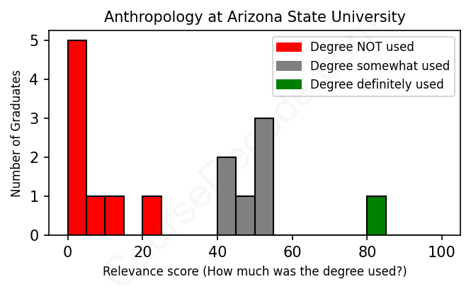 First, some facts. Of the Anthropology graduates from Arizona State University we've analyzed , here's how many have used (or NOT used) their degree in their career: