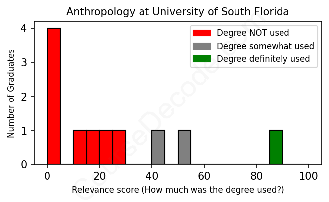 First, some facts. Of the Anthropology graduates from University of South Florida we've analyzed , here's how many have used (or NOT used) their degree in their career: