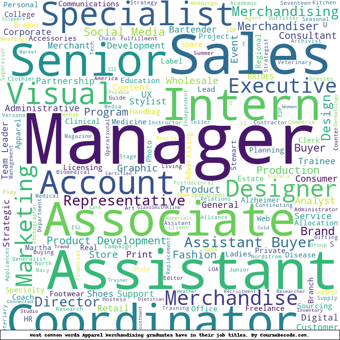 Here is a visual representation of the most common words in job titles for Apparel Merchandising graduates:
